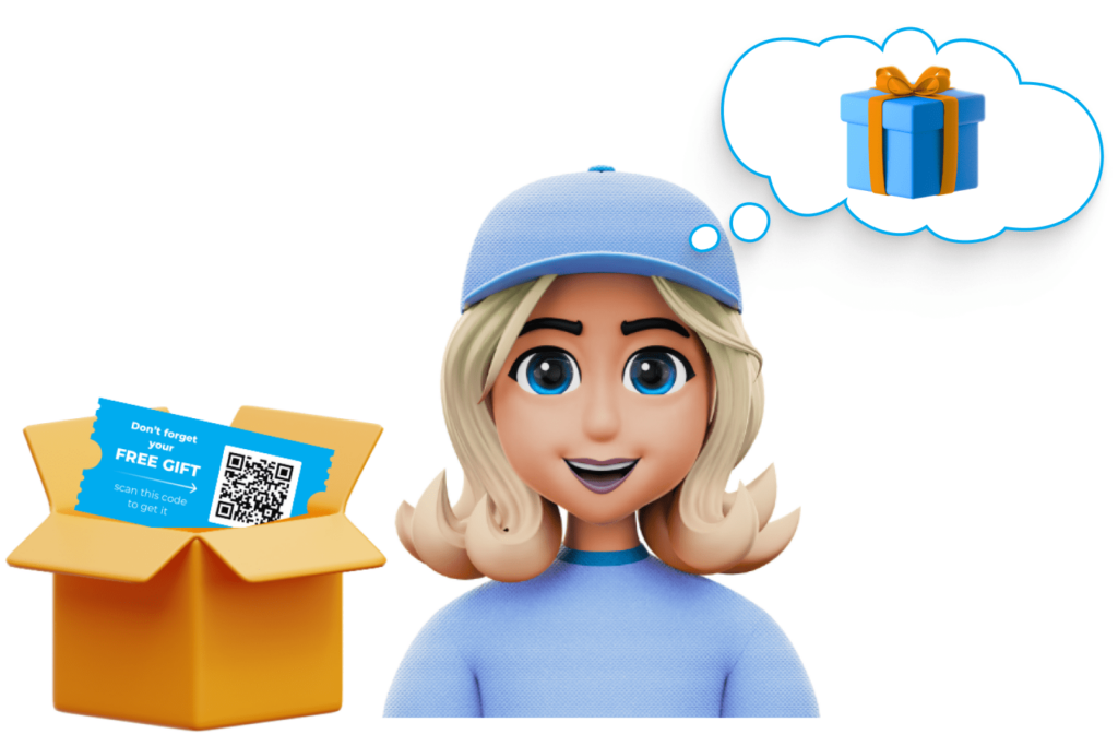 The customer opens your product and finds your QR Code Flyer inside offering a free Giveaway